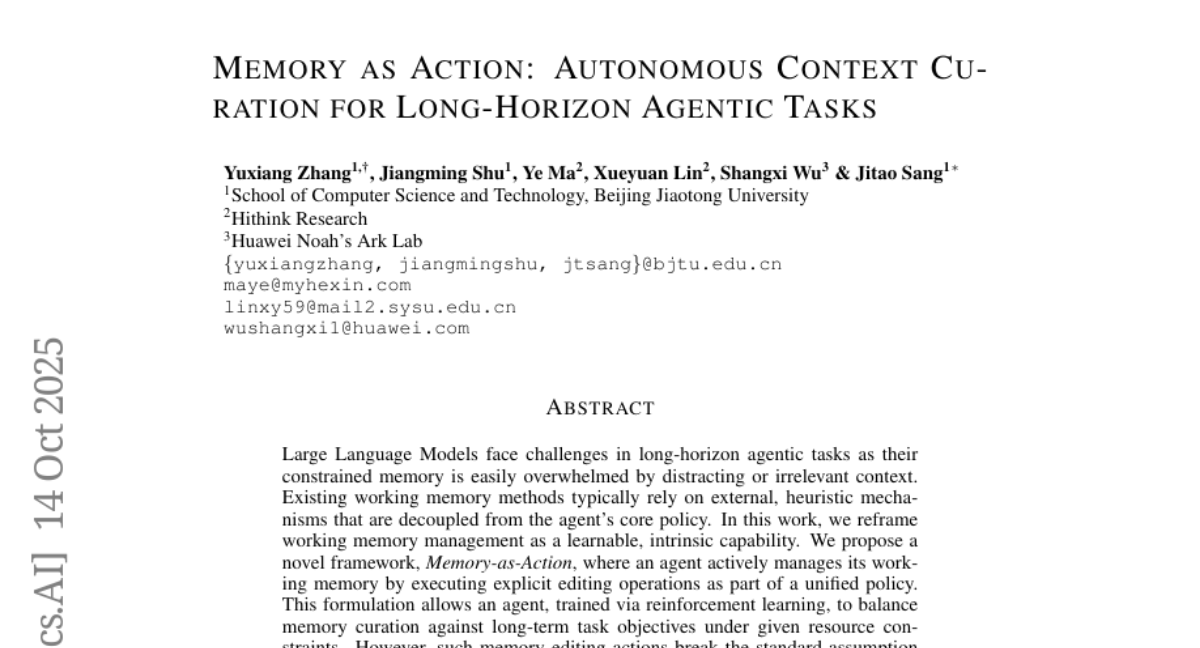 Memory as Action: Autonomous Context Curation for Long-Horizon Agentic Tasks