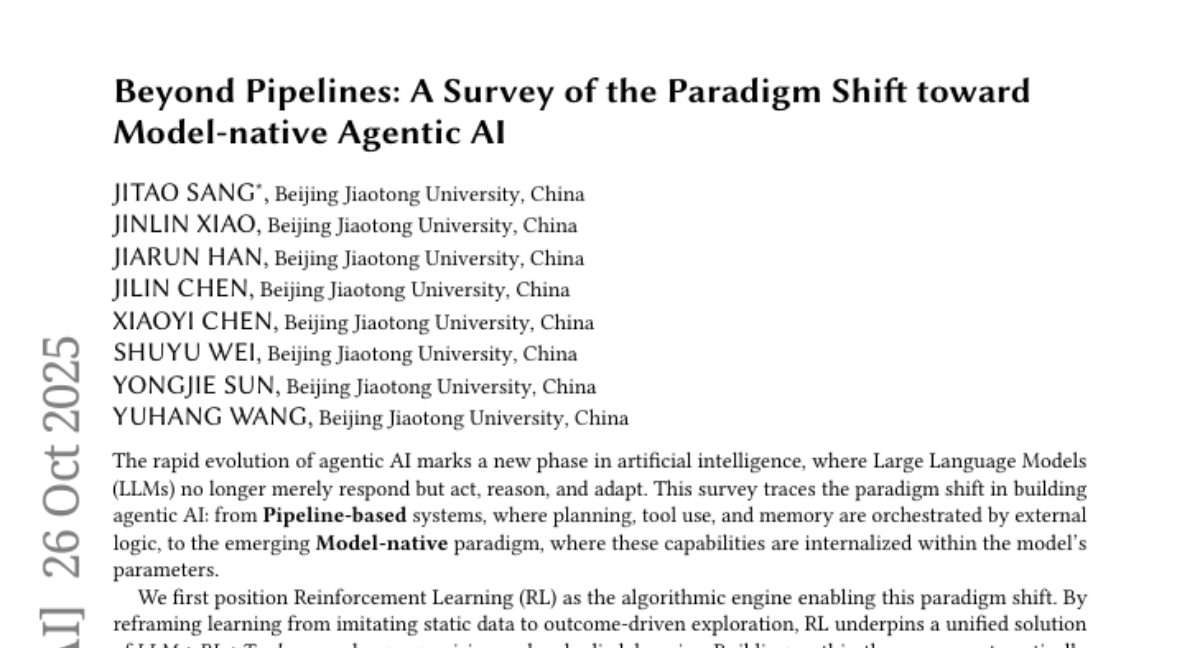 Beyond Pipelines: A Survey of the Paradigm Shift toward Model-Native Agentic AI