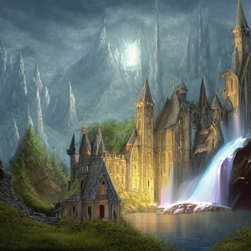 prompt = "concept art digital painting of an elven castle, inspired by lord of the rings, highly detailed, 8k"