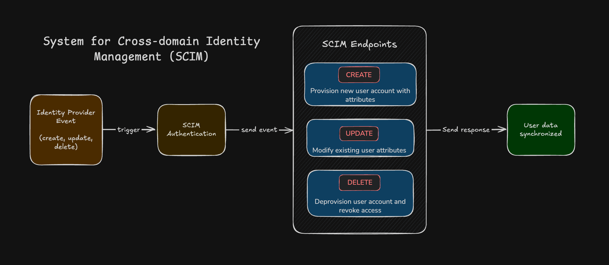 • System for Cross-domain Identity Management (SCIM): For more robust user lifecycle management, SCIM allows your IdP to communicate user identity information to Hugging Face. This enables automatic creation, updates (e.g., name changes, role changes), and deactivation of user accounts on Hugging Face as changes occur in your IdP. This ensures that user access is always up-to-date with their status in your organization.