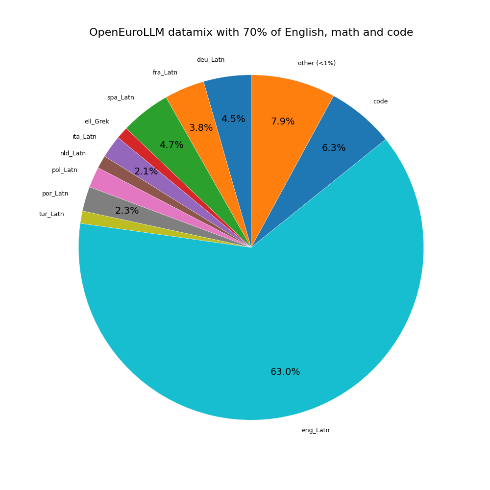The final data split is based on a predefined proportion of English, code, and math, with the remaining token budget allocated to other languages. A minimum proportion for each language in a mix is 0.05% (with the exception of nno_Latn, which is combined with nob_Latn for proportion calculation).