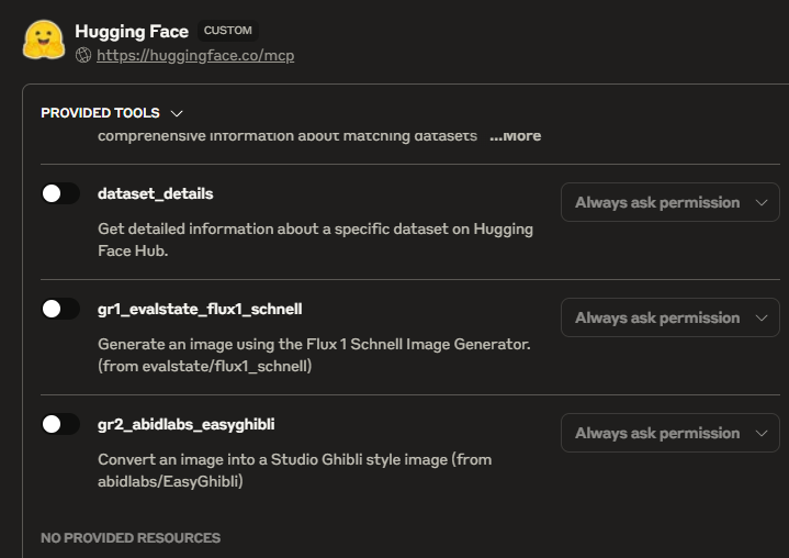 Qwen3-235B), with only a little bit of context shown from each page.Qwen3-235B) gets the query summary and the original 50 pages with low context, and decides which pages are most relevant to the research topic. The Filterer then outputs the URLs to the relevant pages, which are then re-fetched (with more context) and sent to the Researcher.Qwen3-235B-A22B-Thinking-2507). The researcher sees the summary, searched queries, and fetched links, then writes a thorough research report. The agent using the tool provides the user with a summary of the report and a link to download research_report.txt. The researcher's instructions are similar to some leaked Perplexity sys prompts.HF_READ_TOKEN for inference. Search_DuckDuckGo tool has been further enhanced. It now allows the agent to browse through all pages of results. The results also now include published date (if detected). It also now supports every DDG search types! Default DDG search is called text, but it can also now search by news, images, videos, and books. Fetch_Webpage tool now specifies how much of the page has been truncated, and cursor index, allowing it to pickup where it left off without re-consuming tokens. The model can now also choose to strip CSS selectors to remove excess noise, and there's a new URL Scraper mode that only returns URLs found on the full page.memories.json file in the repo, no external database required.HF_READ_TOKEN in the env variables will show all tools. If there isn't a key present, The Image/Video Gen tools are hidden.mcp.json, but claude.ai has no such option. Anyone got any ideas?