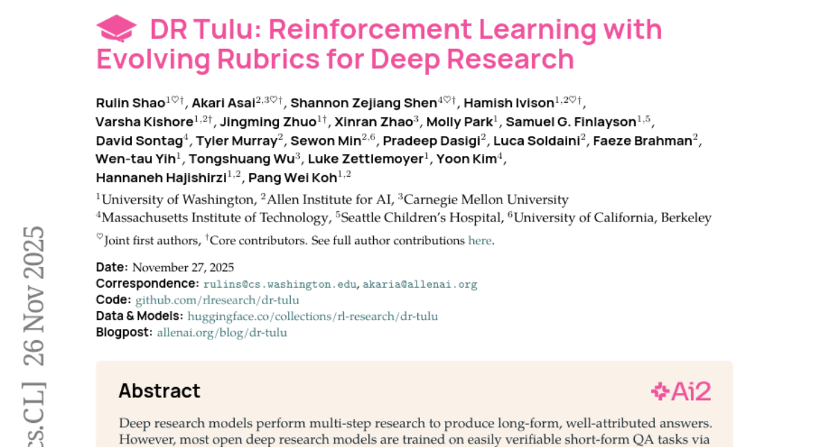 DR Tulu: Reinforcement Learning with Evolving Rubrics for Deep Research